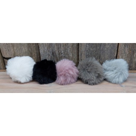 Tekoturkistupsu neljässä värissä. Halkaisija karvoineen noin 6cm. Tupsussa kuminauhalenkki esimerkiksi nappikiinnitystä varten.