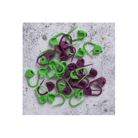 Kätevät avautuvat silmukkamerkit 30 kappaleen paketissa. Väri vihreä/violetti.